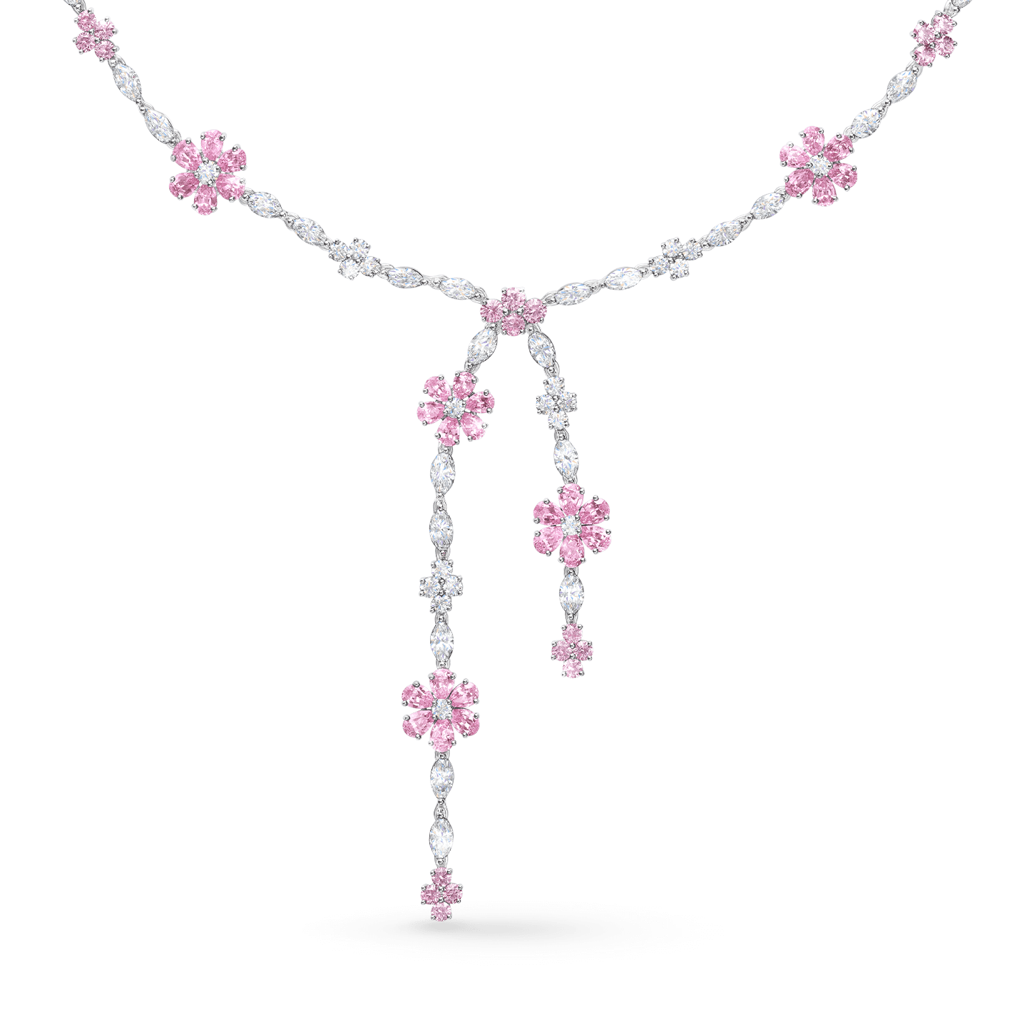 Forget-Me-Not Pink Sapphire and Diamond Lariat Necklace