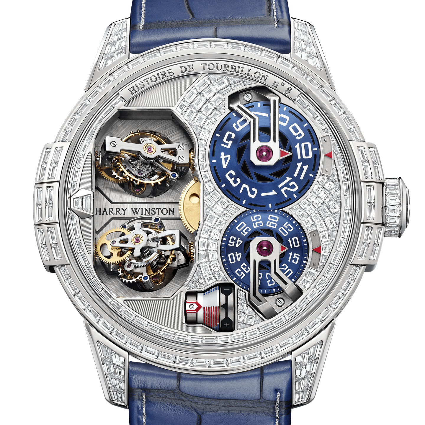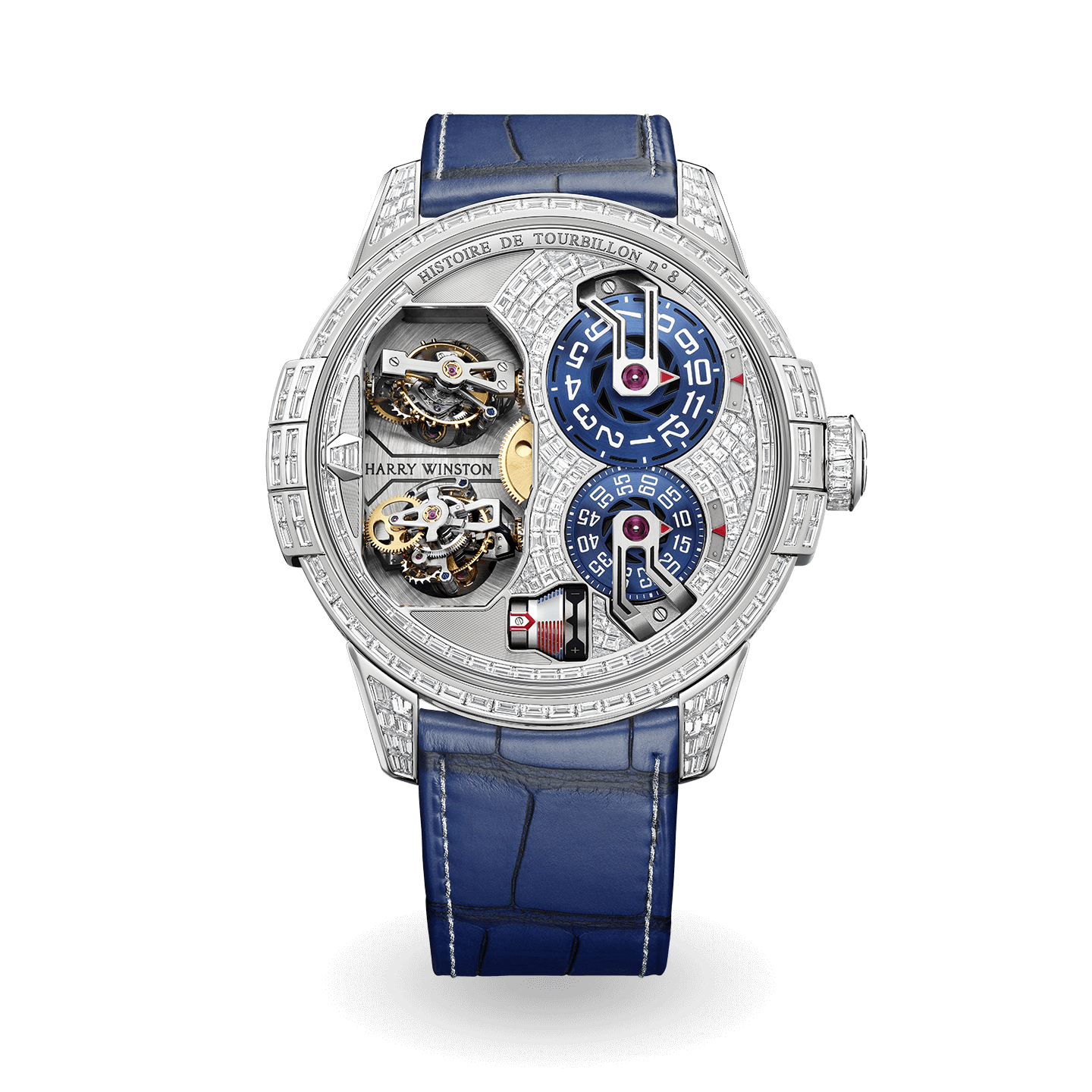 L'Histoire de Tourbillon 8, une pièce unique qui associe les univers de la haute joaillerie et de l'horlogerie de précision de Harry Winston. Équipée de deux tourbillons biaxiaux indépendants pour atteindre les plus hauts niveaux de précision chronométrique, cette montre avant-gardiste offre un spectacle cinétique fascinant, magnifiquement sertie de 415 diamants taille baguette.