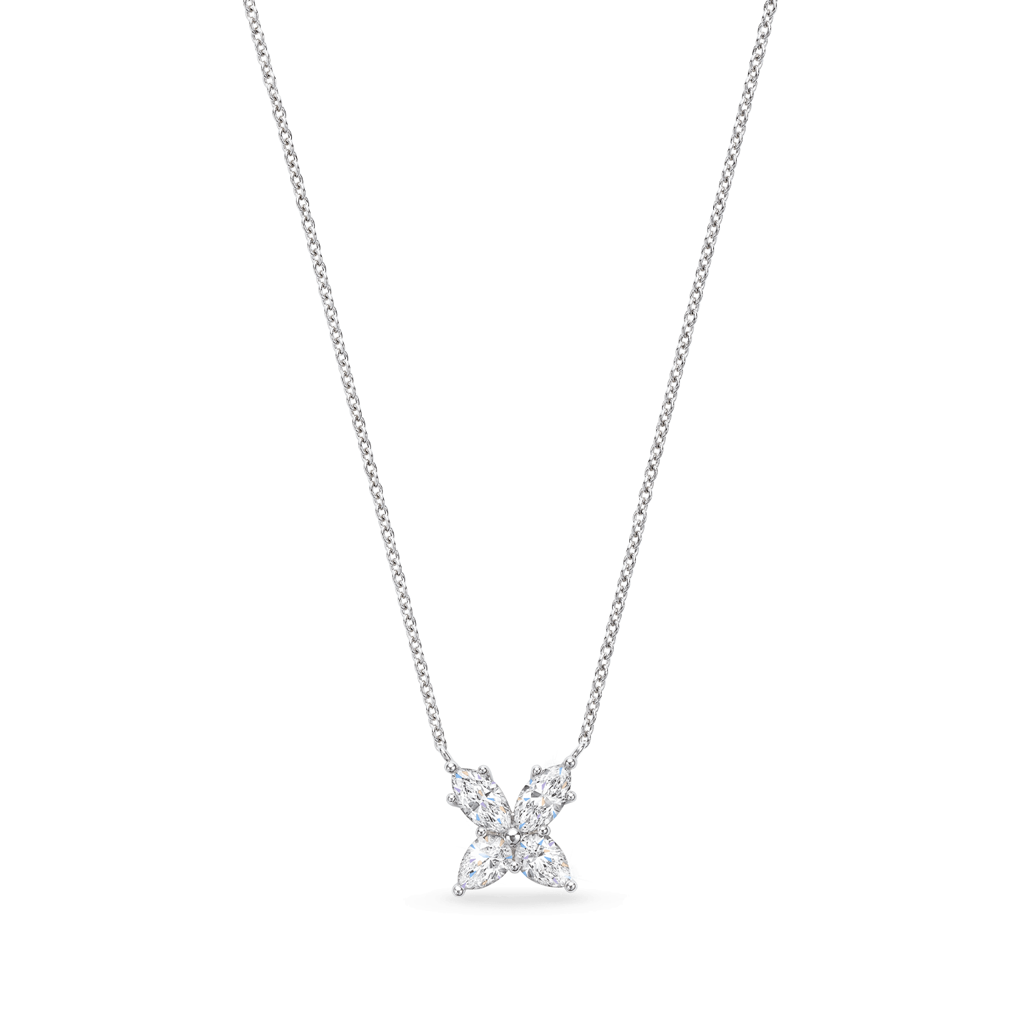 Elégant et classique, le pendentif Harry Winston Marquesa est inspiré par la beauté de la nature et illuminé des plus beaux diamants au monde.