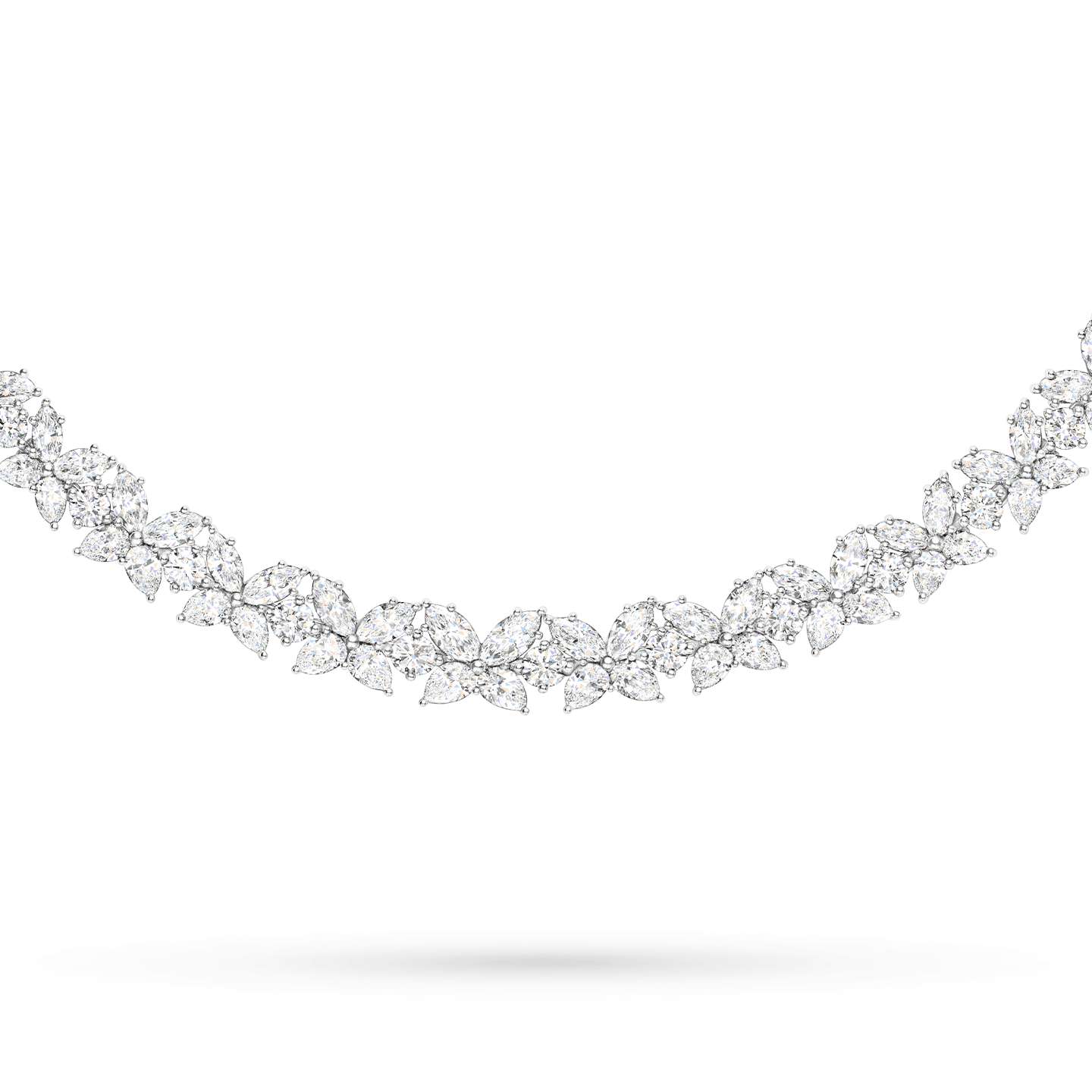 Le collier Marquesa dévoile un somptueux assemblage de 210 diamants, où les tailles marquise, poire et brillant s’unissent en une harmonie éclatante. Ce bijou intemporel capte la lumière sous tous les angles, offrant un éclat incomparable qui incarne l’excellence du savoir-faire Winston. Une pièce d’exception qui métamorphose chaque instant en une occasion d’élégance.