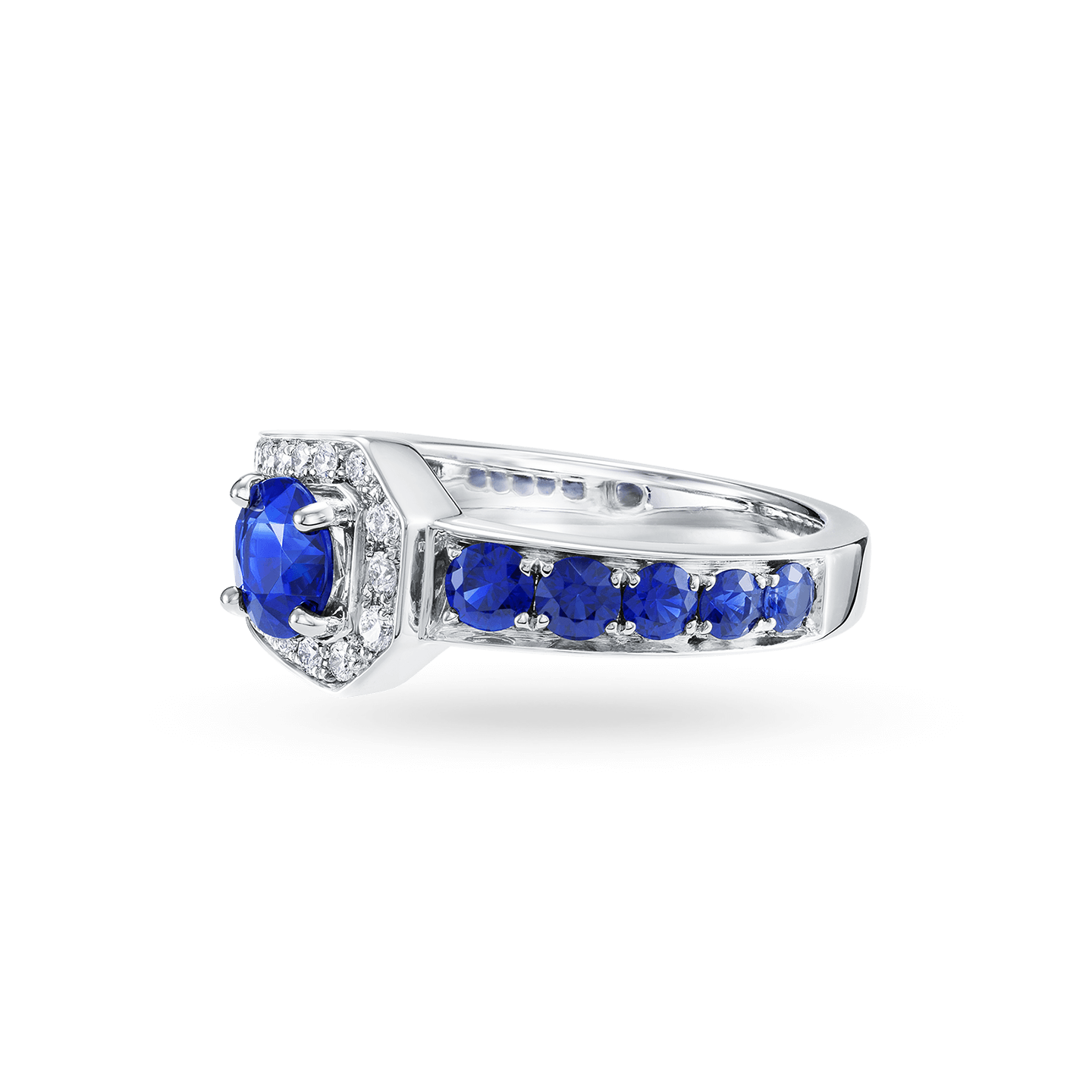 6個のラウンド・サファイア(計約1.31カラット)、35個のラウンド・ダイヤモンド(計約0.34カラット)、プラチナ製。