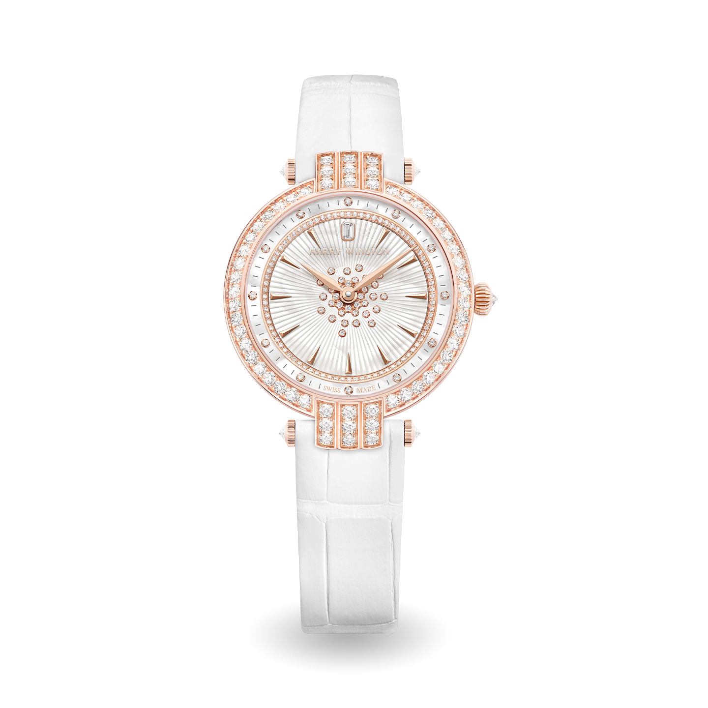 マザー・オブ・パールとダイヤモンドが奏でる輝きのコンビネーション。クラシカルな装飾技法であるエングレービングにより豊かな表情を湛えるHW Premier Automatic 31mm は、エレガントな佇まいと精緻なムーブメントで、大切な時間を刻みます。