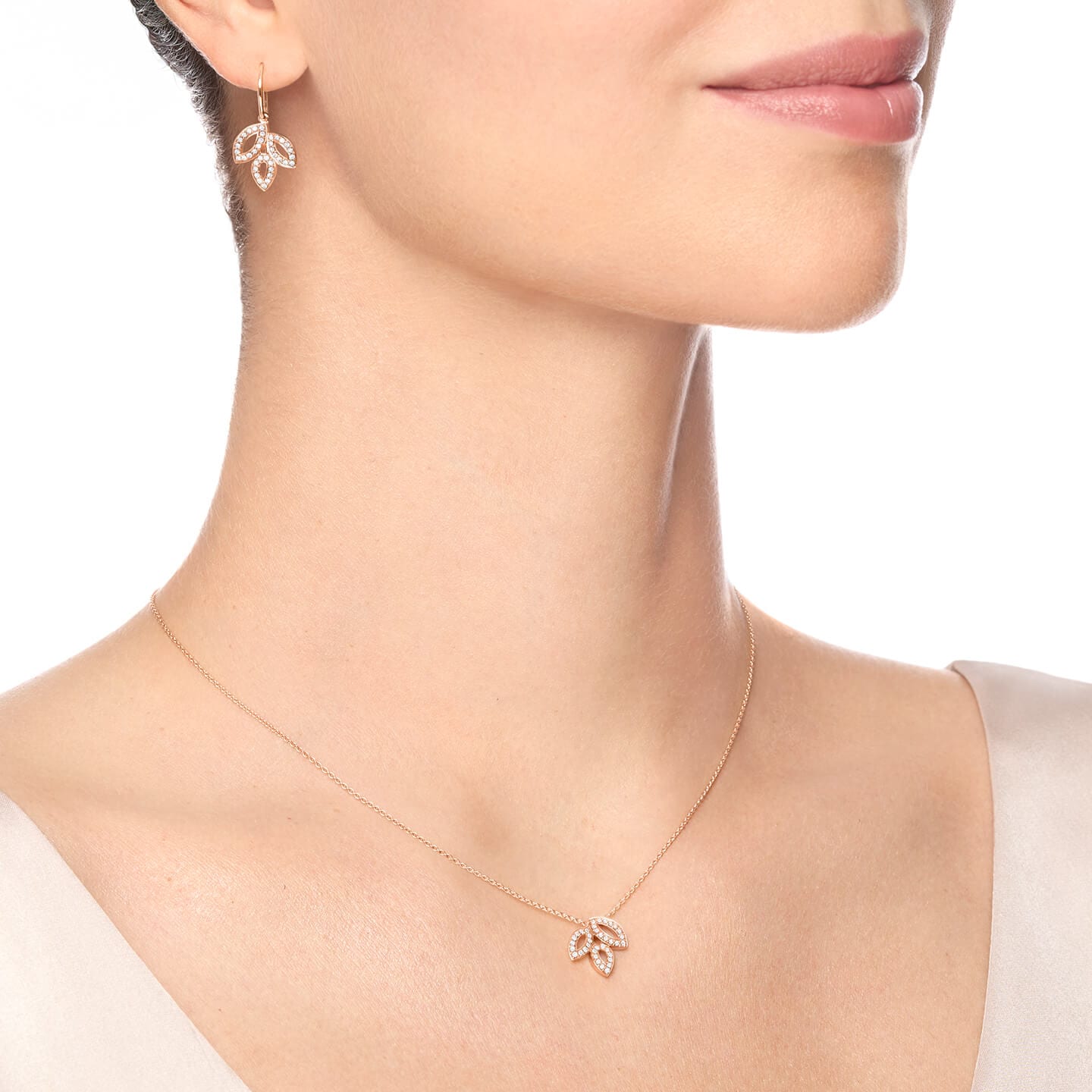咲き誇るユリの姿をモチーフにした、繊細なペンダント。温かみのある18Kローズゴールドに、37個のラウンド・ブリリアントカットダイヤモンドをあしらった優美なデザインが、どんな装いにも花びらのような繊細な煌めきとエレガンスを添えます。日本限定で展開されるこのネックレスは、あなたのジュエリーコレクションに洗練された輝きをもたらします。