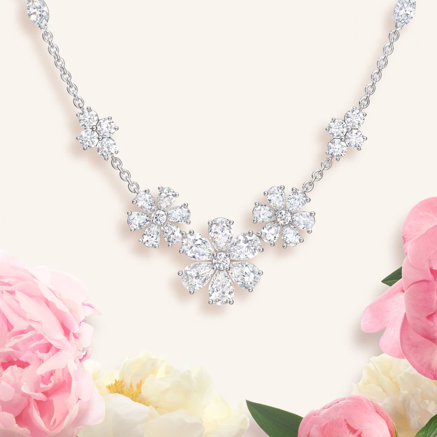 優雅なリリークラスターから、光溢れるサンフラワー、そしてノスタルジックなフォーゲット・ミー・ノットまで。ハリー・ウィンストンのフローラルモチーフ・ジュエリーと華やかな存在感のタイムピースを厳選。ひとつひとつの作品に、自然から受け継いできたブランドの尽きることのないインスピレーションが息づいています。