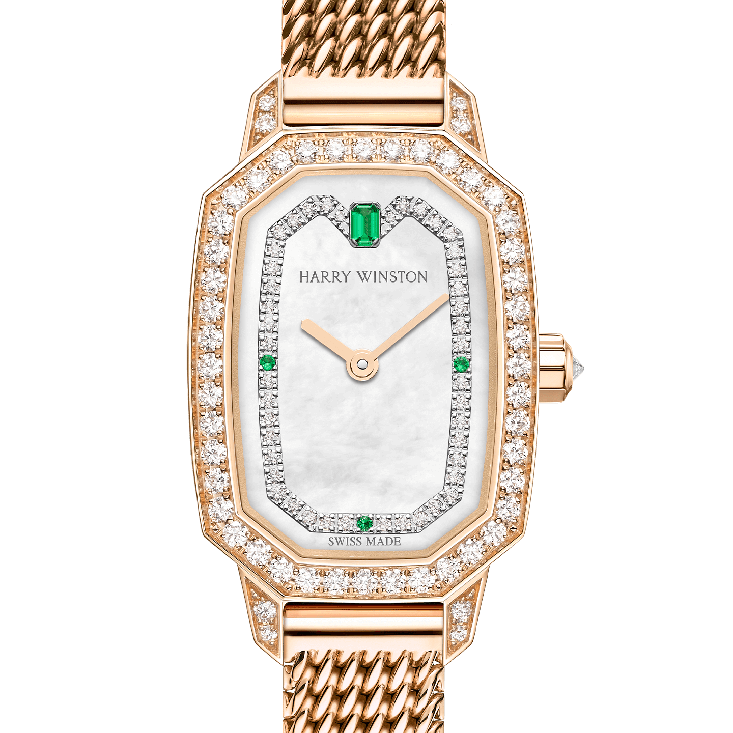 海瑞温斯顿印记Emerald系列腕表呈现浓郁绿色调,饰以闪亮的钻石和珍珠母贝,高雅动人。此款作品兼具腕表的功能与海瑞温斯顿珠宝的魅力,对于希望同时拥有优美造型和实用功能的女士来说,可谓理想臻品。