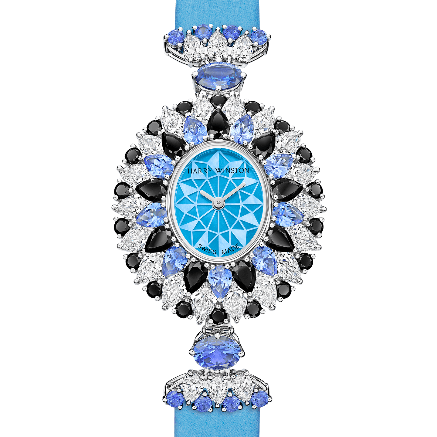 承袭了品牌Winston Candy系列鸡尾酒戒指明亮鲜艳的糖果色,这款精心打造的铂金腕表诠释出甜蜜品味时光的方式。这款腕表融合鸡尾酒戒指的浓烈色彩和迷人魅力,成为手腕上诱人的甜美装饰。
