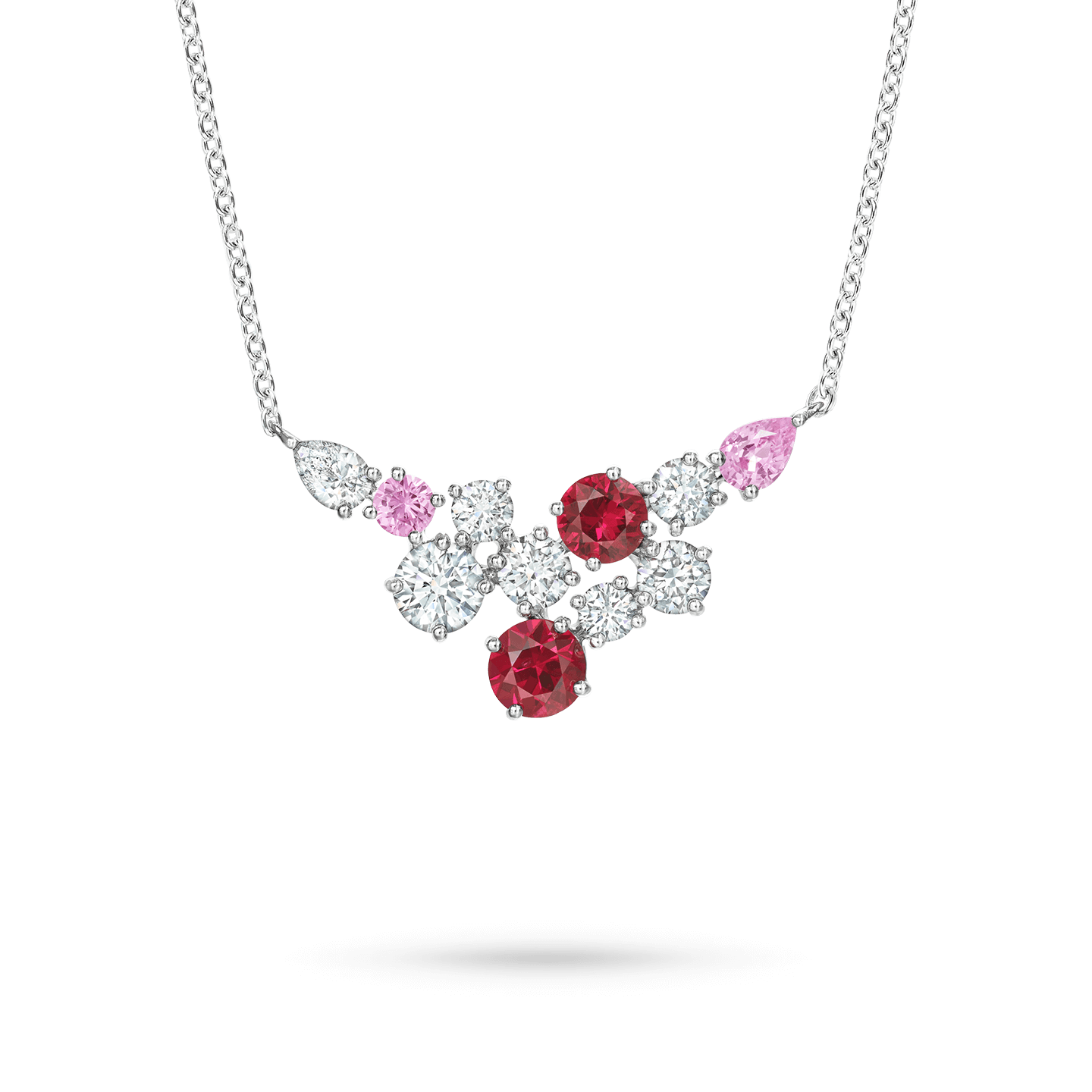 Sparkling Cluster粉色蓝宝石、红宝石和钻石项链