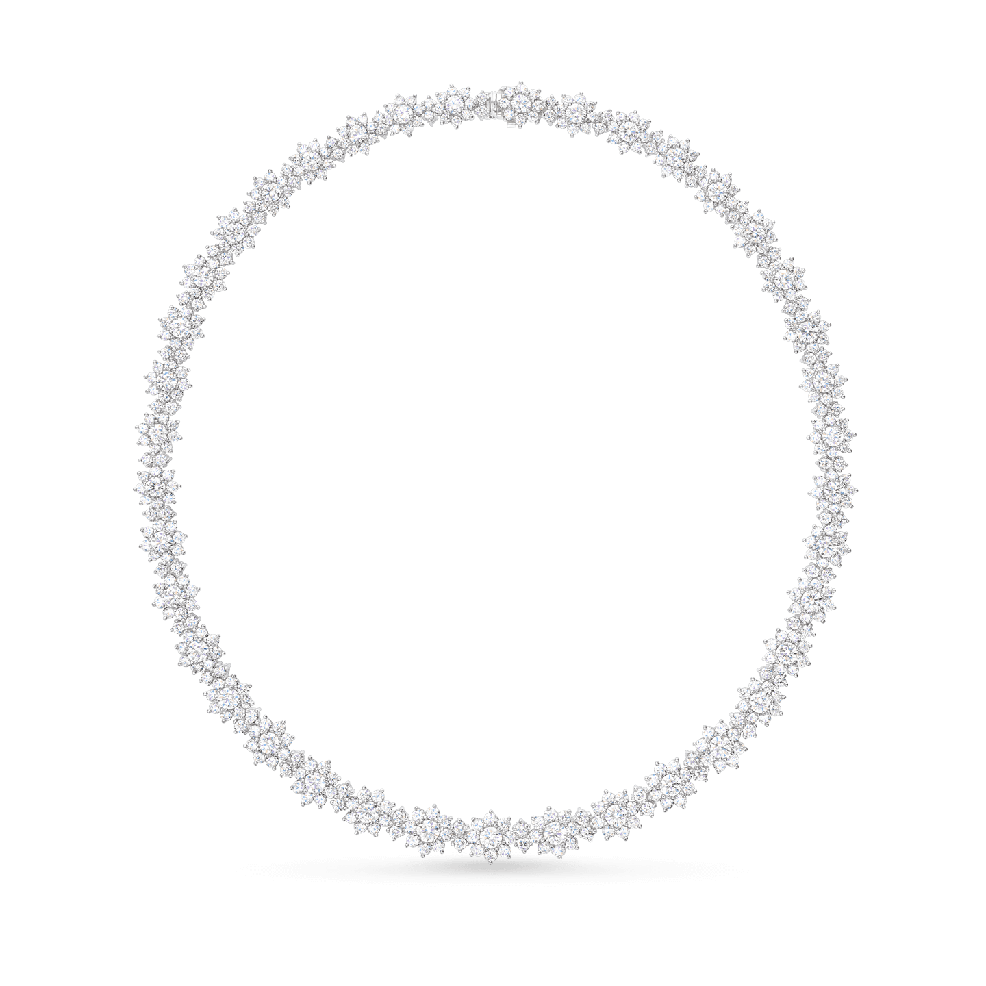 165颗圆形明亮式切工,总重约16克拉的钻石,悉心镶嵌于铂金底座之上。