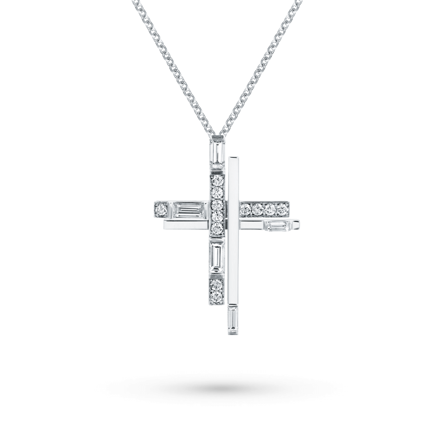 5颗长形切工与12颗圆形明亮式切工,总重约0.72克拉的钻石,悉心镶嵌于铂金底座之上。