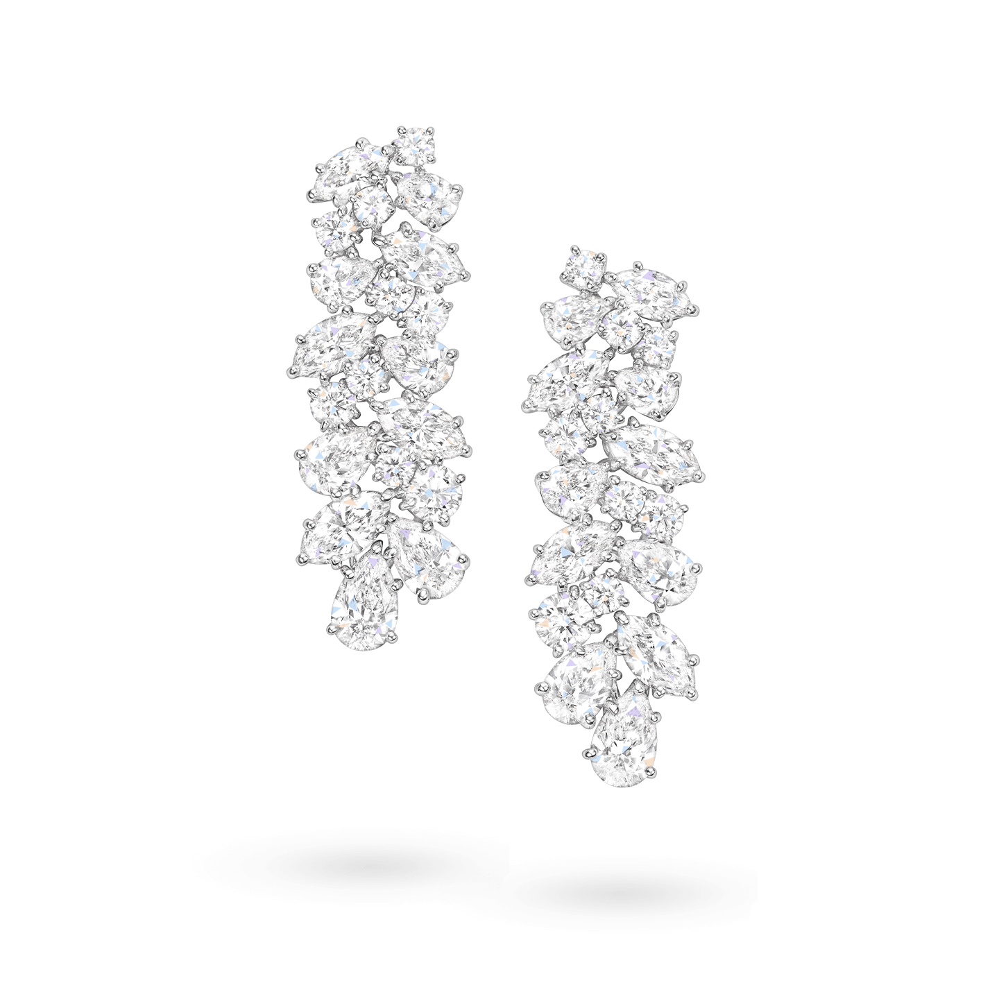 18颗圆形明亮式、12颗水滴形切工和10颗榄尖形切工,总重约13.00克拉的钻石,悉心镶嵌于铂金底座之上。