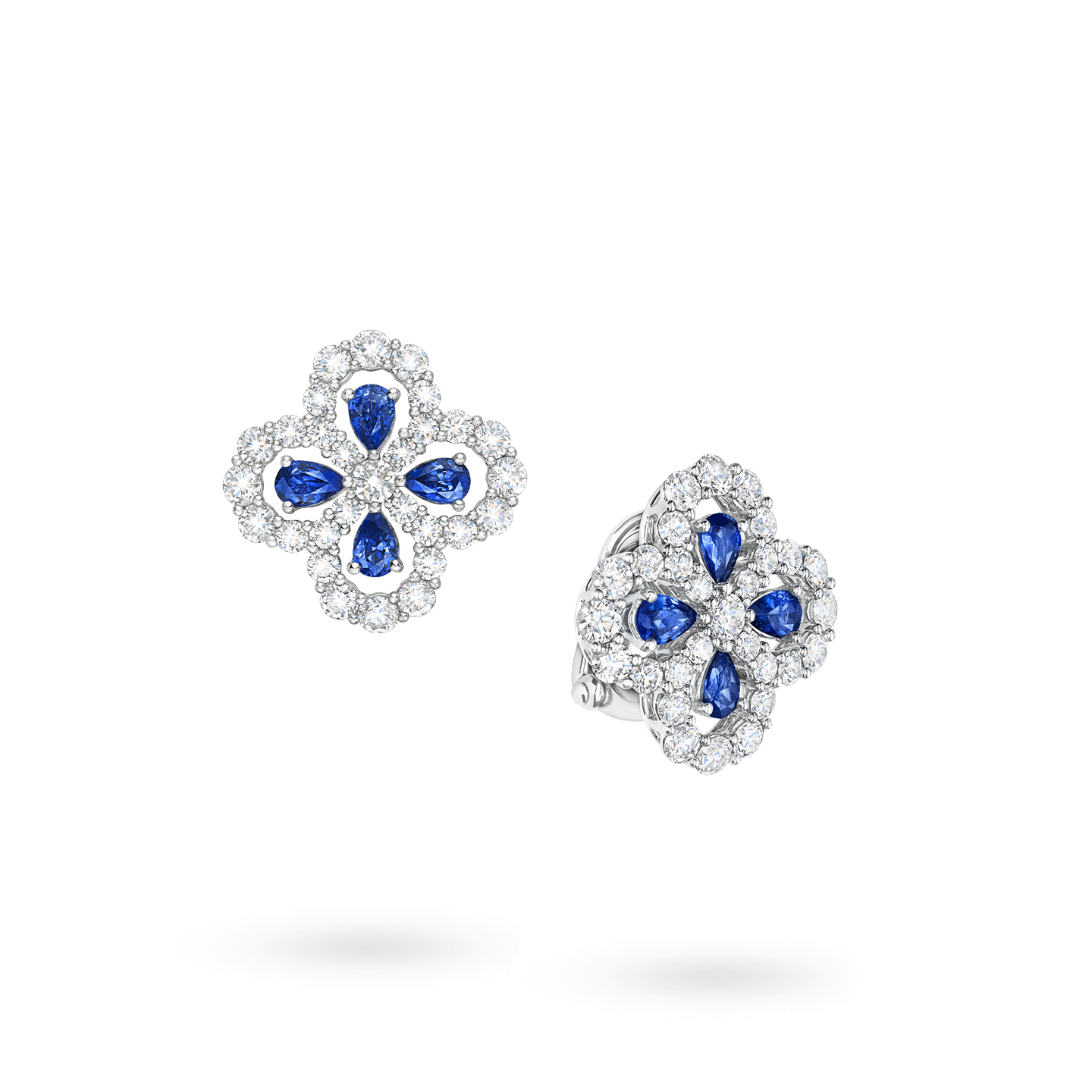 呼應海瑞溫斯頓傳奇水滴型寶石的優雅氣韻,這款耳環展現出經典設計的璀璨光華。八顆耀眼的水滴型切工藍寶石,以圓形明亮式切工鑽石環繞,悉心鑲嵌於精緻的鉑金底座中。藍寶石的色澤與鑽石的光輝呈獻完美平衡,從白晝的優雅氣質到夜晚的華麗風采,皆能流轉自如,散發不朽魅力。