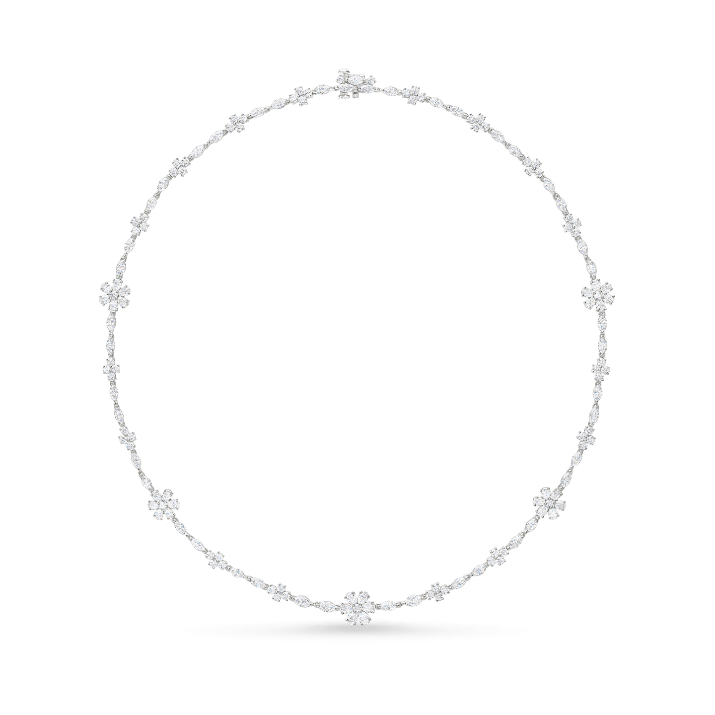 作為品牌永恆的繆斯女神,大自然不斷地成為經得起時間考驗的精美珠寶創作設計靈感。這款鑽石項鍊以精緻的勿忘我花朵展現出超凡的美麗,項鍊上鑲嵌著146顆水滴型、馬眼型和圓形明亮式切工鑽石,總重約12.25克拉,悉心鑲嵌於精心打磨的鉑金底座之上,瞬間展現出迷人的魅力。