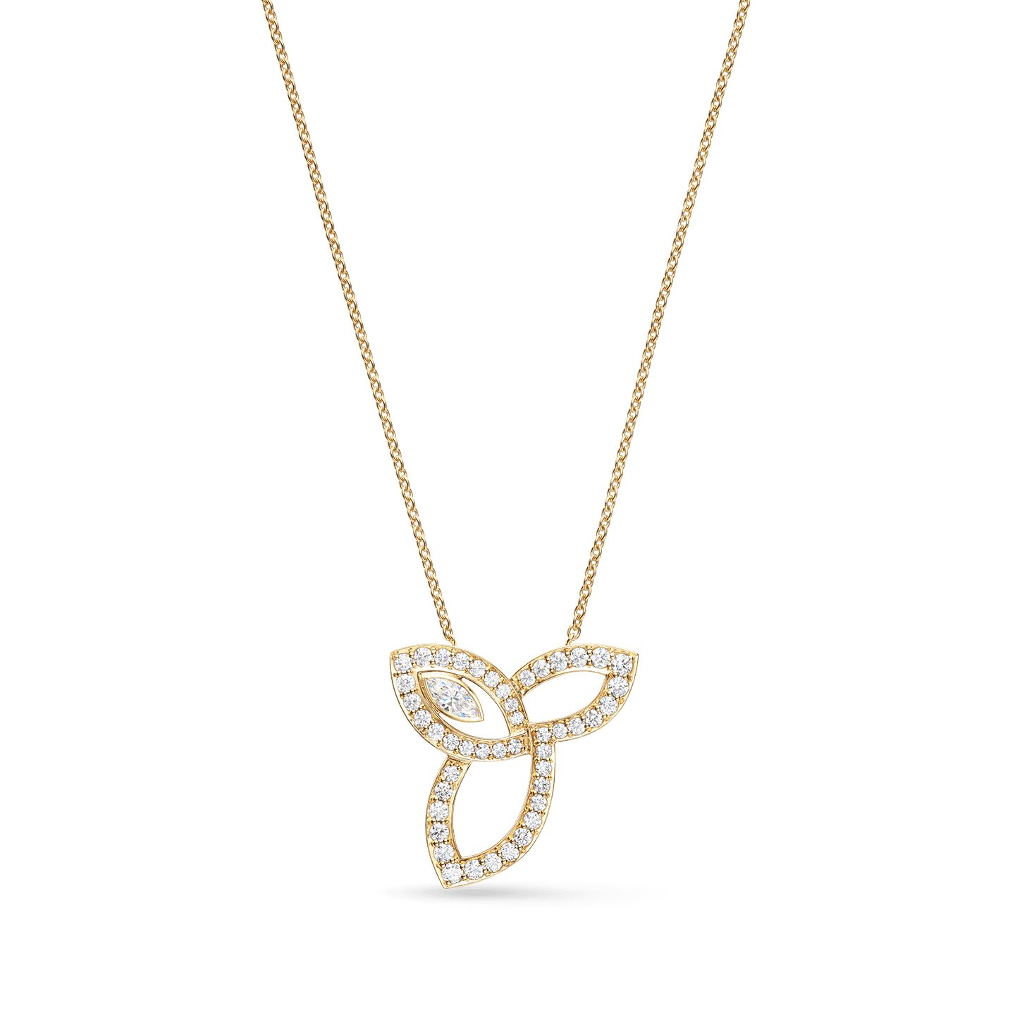 1顆馬眼型切工鑽石及45顆圓形明亮式切工鑽石,鑽石總重约為0.68克拉,悉心鑲嵌於18K黃金底座。