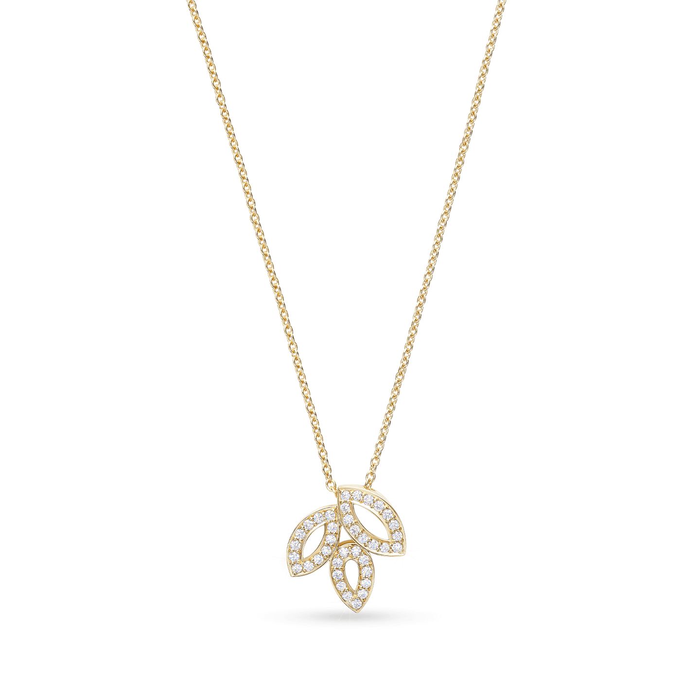 37顆圓形明亮式切工鑽石,鑽石總重約為0.19克拉,悉心鑲嵌於18K黃金底座。